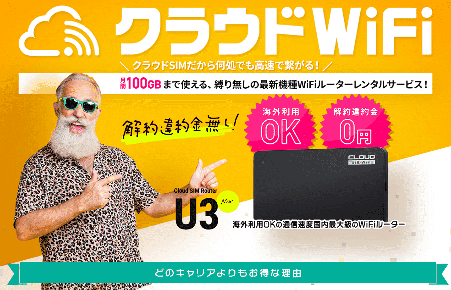 クラウドWiFi東京は、2020年話題になっている最新機種U3を使っているwifiです。